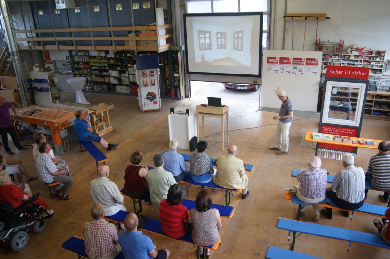 Am 18.Juli fand unser 120-jähriges Firmenjubiläum statt. Begleitet wurde dieser Tag von Vorträgen unserer Mitarbeiter wie z.B. „Einbruchschutz“ und „Denkmalpflege Fenster“. Außerdem wurde eine zweitürige Anrichte produziert über die Planung bis hin zum fertigen Stück. Highlight des Tages war der Besuch der freiwilligen Feuerwehr Hainsacker, die vergeblich versuchte ein Pax-Sicherheitsfenster aufzubrechen. Unsere langjährigen Mitarbeiter und die Schreinermeister Max Braun sen., Rupert Braun, Maximilian Braun wurden allesamt vom Vizepräsidenten der Handwerkskammer durch Überreichung von Urkunden ausgezeichnet. Die Feierlichkeiten am Abend wurden musikalisch von der bayrischen Band „Drah De Wadl“ und kulinarisch vom Catering Eschenwecker begleitet.
